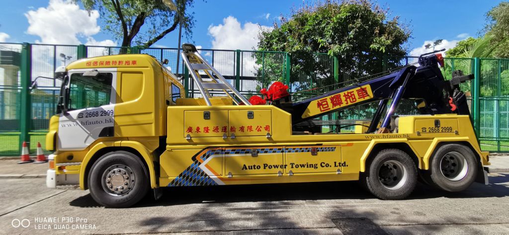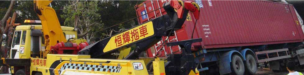恒輝拖車自設貳萬呎廠房,不斷更新其拖車裝備。本公司從歐美引入先進拖車工具,並把其改良以配合中港路面設計。全線拖車隊均配有安全警告燈丶消防滅火筒丶反光警示牌,以保障各道路使用者安全。